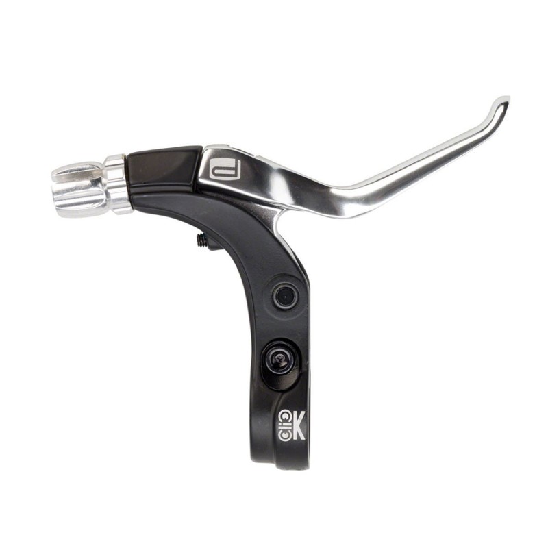 Designed for linear rim braking by cable using a V-caliper, the PROMAX Click Pro brake lever includes an aluminum body and lever, the whole being reversible allowing it to be mounted on the right or on the left. It has a specially designed clamp to fit your handles with double lock-on, this ensures that your handles stay in place while eliminating the need for additional clamps. It has a reach adjustment for precise positioning and an adjuster to fine-tune the cable tension. It is compatible with mechanical calipers for disc braking by cable.
