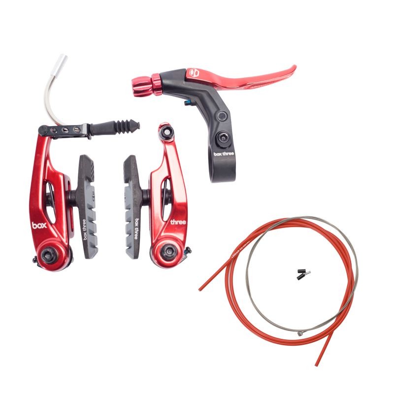 Suitable for young riders, the V-Brake BOX Three Mini brake kit gives you braking power to be able to stop your BMX in all circumstances. It is composed of the V-brake BOX Three Mini caliper in cold forged aluminum for better rigidity and having 35mm of pad adjustment. It also has the reversible BOX Three Mini lever allowing it to be mounted on the right or on the left, suitable for small hands, and BOX Three gliders with fins for a perfect grip with your rim.
